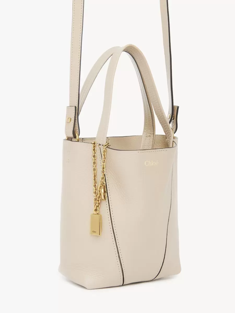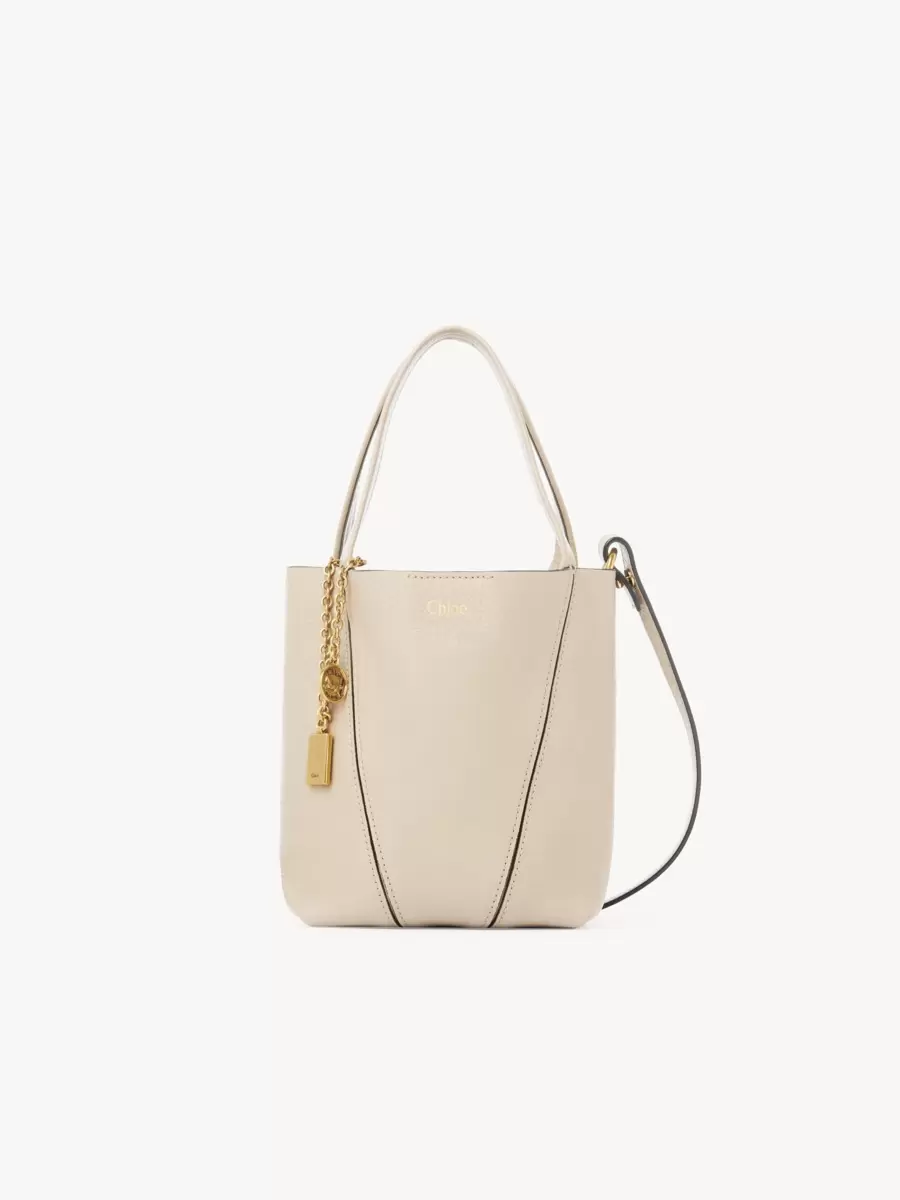 Tillverkad av glänsande, narvat nötskinn, har den lilla Chloé Spin-tygväskan en minimalistisk silhuett med grafiska linjer. En dinglande kedja pryder Maisons signatur Chloé- och hästmedaljer.