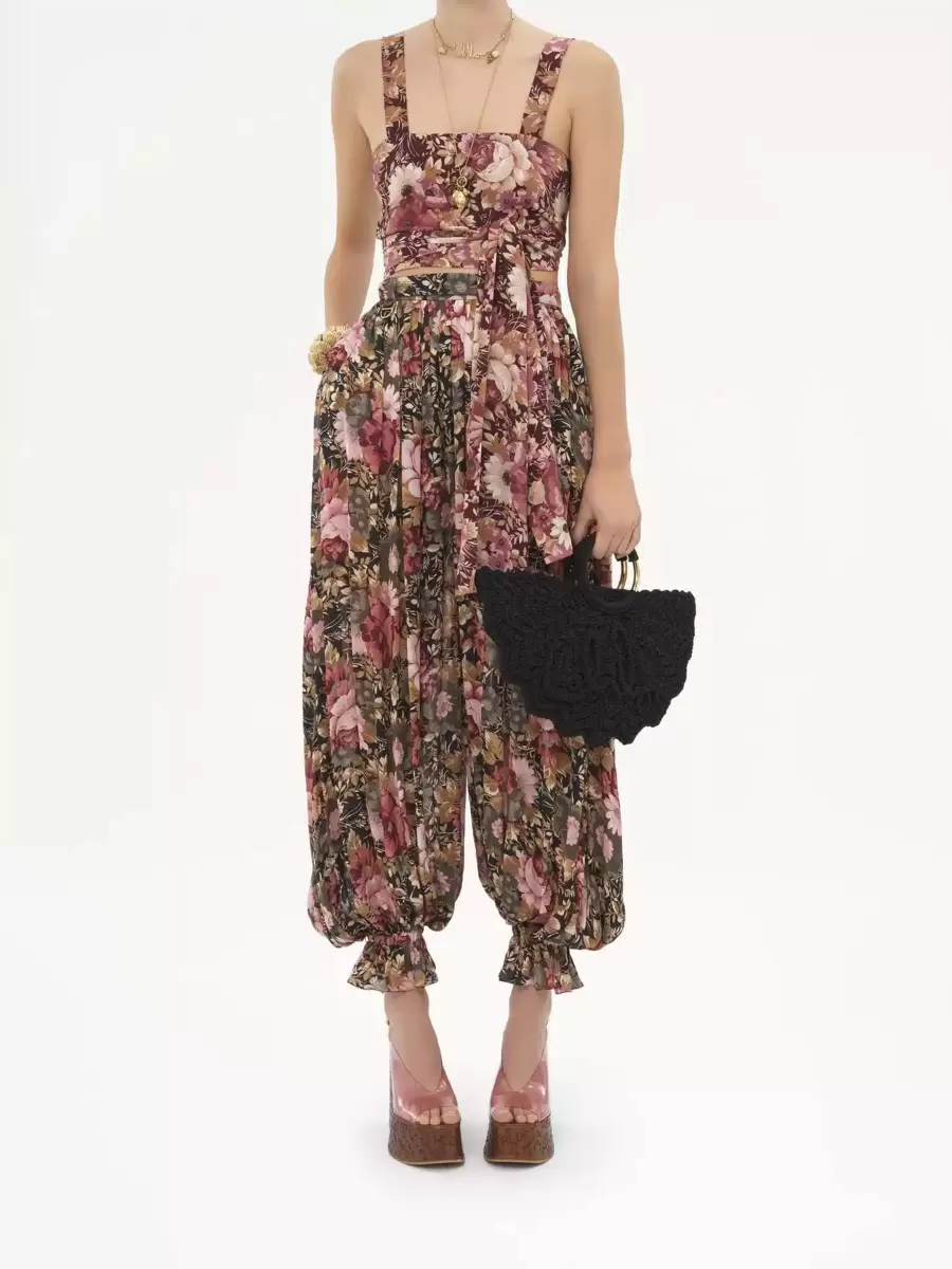 Den lilla virkade tote-väskan i Bracelet Paravent-modellen har en vågig silhuett och seriens halvtäckta gyllene armbandshandtag. Framsidan har en handskriven Chloé-signatur inspirerad av Maisons arv.