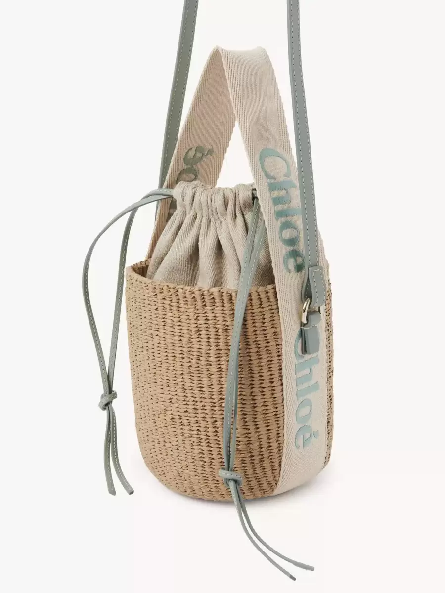 Denna lilla Woody-korgväska är handvävd av rättvisemärkt papper av oberoende hantverkare i Kenya. Den har ett signaturhandtag i glänsande kalvskinn och en bomullspåse som fästs med en läderdragsko.