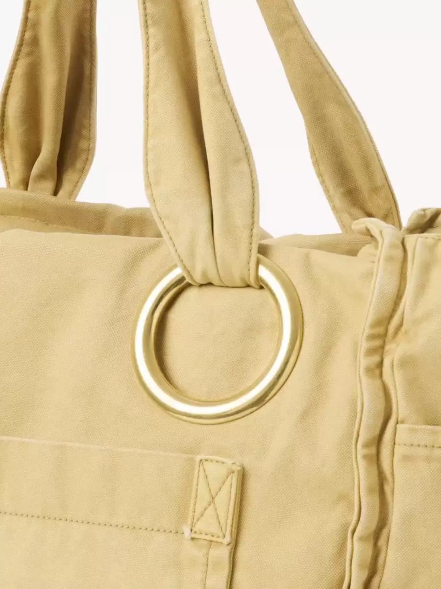 Denna stora Chloé Plage-tygväska är tillverkad av tvättad bomull med en blekt finish. Det rymliga huvudfacket har flera fickor, stora guldfärgade öljetter och en tryckt Chloé-logotyp.
