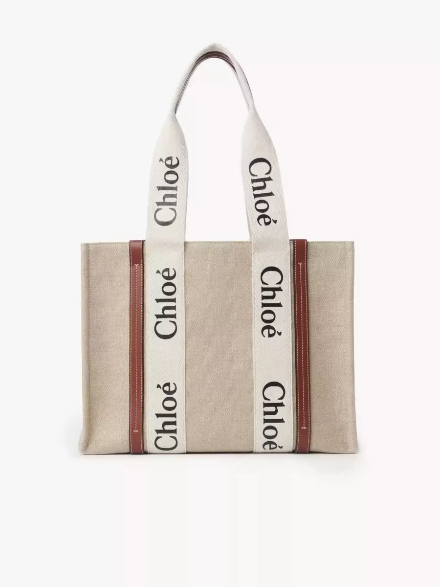 Toteväska i linnecanvas och glansigt kalvskinn med Chloé-logotyp
